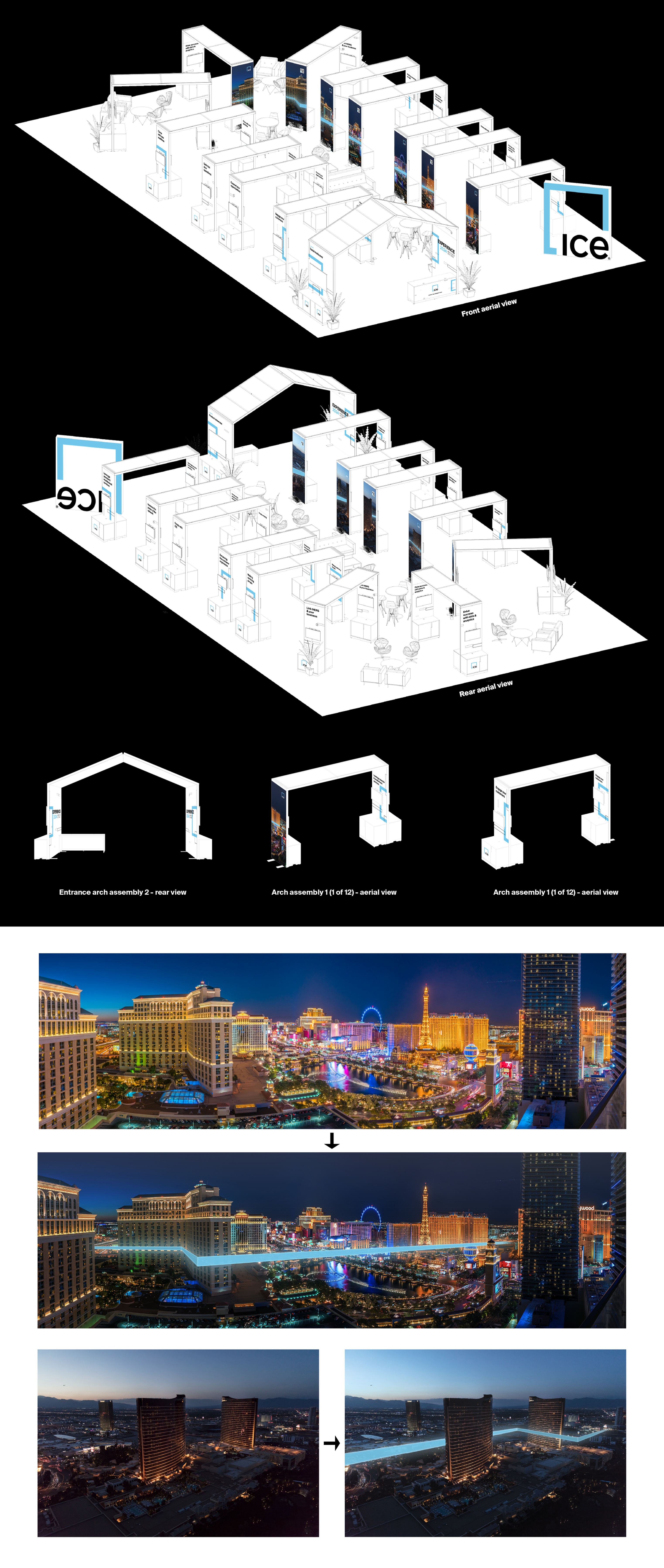 Provided art direction + execution of designs for ICE Experience 2024's exhibition (one of the largest events focusing on mortgage technologies and trends). All environmental booths follow a consistent design element of utilizing 1 blue square and various black squares portraying a fintech data feel.